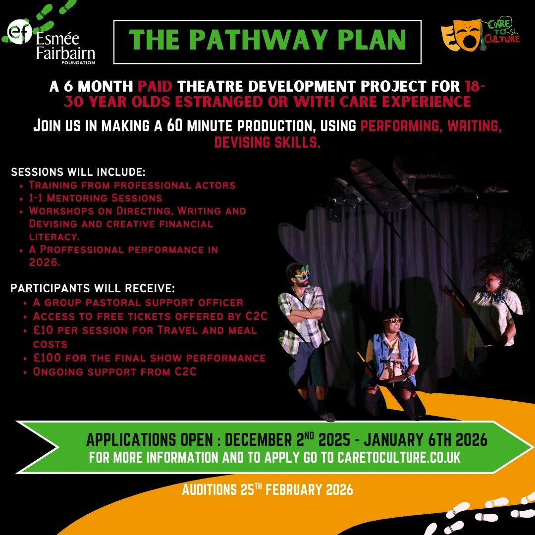 Over 6 Months 10 creatives will work alongside a care experienced writer to develop a production, visited by creative artists, offered opportunities to develop work and build on their creative skills through the work that we do culminating a 60 min production over 4 days